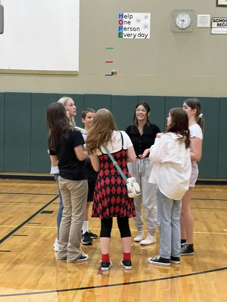 Hold up your assigned number so team members can find you. Invite students to stand in a circle with you.